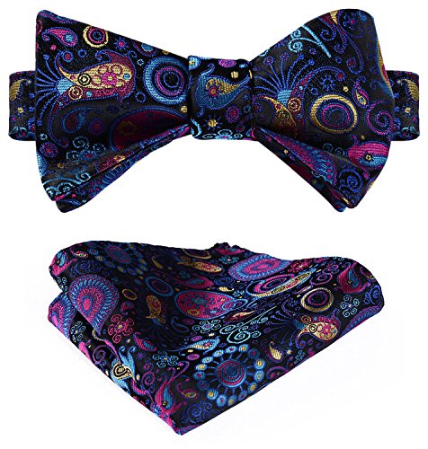 -. Title : HISDERN Men's Paisley Jacquard Self Bow Tie Set