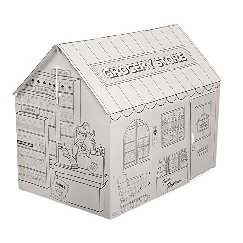The only single-piece constructed cardboard playhouse on the market! Comes 97% pre-assembled; 6 simple folds take you from play to put-away. Color it, paint it or glue things to it, great for birthday parties, sleepovers, or the perfect gift. Children can color their way to fun with My Very Own House. This durable playhouse uses the strength of heavy-gauge cardboard to create a sturdy play area. Every inch of the house has been meticulously designed to provide the strongest, safest play area for your child. There are no tabs or sharp edges inside and reinforcement flaps along the bottom walls provide a safe, sturdy coloring center. Set of 8 Jumbo washable markers included. And, because we care about your child's real world as much as their imaginary world, our products are made from bio-degradable, eco-friendly materials that are formaldehyde-free and completely recyclable. From the Manufacturer Buy, sell, and stock the shelves! Color the awning, paint the walls, check out customers, set your own prices, make a home delivery, or feed the whole neighborhood. Make your grocery list, check it twice, and get everything you for a quick snack or a week of meals. This cardboard playset unfolds in minutes for hours of fun as clerks, cashiers, and customers. And, because we care about your child's real world as much as their imaginary world, our products are made from bio-degradable materials that are formaldehyde-free and completely recyclable. 0 |
