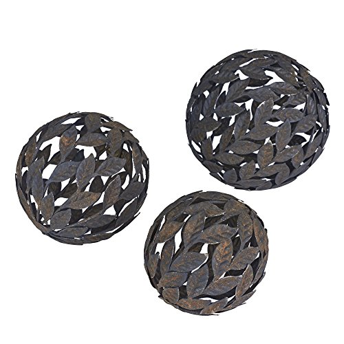 - Set of 3 metal decorative balls with leaf pattern for bowls and centerpieces