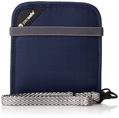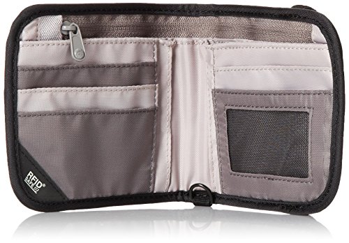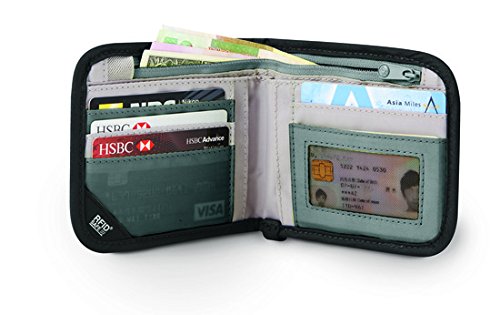 -. Feature : High-security, RFID-blocking bi-fold wallet ideal for traveling and keeping all essentials organized / RFIDsafe blocking material built into wallet helps protect IDs and credit cards from hacker scanning / Detachable, strong Dyneema webbing strap helps prevent wallet snatching and accidental drops / Zippered note slot; five card slots; outer zipper coin pocket; flexible strap to easily open and secure wallet / Weighs 2.8 ounces