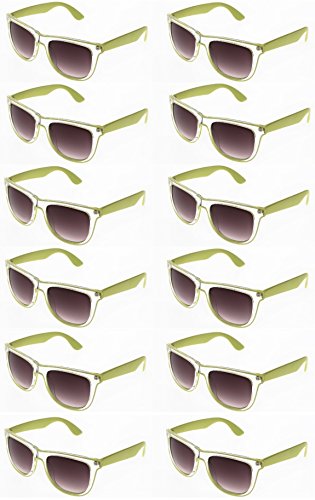 CLASSIC 80's WAYF SUNGLASSES - Retro Translucent Frame Sunglasses Bulk Pack. Classic Style Sunglasses for Women & Men. Wholesale Party Pack for Bachelor or Bachelorette Party (Lime, 12 Pack)