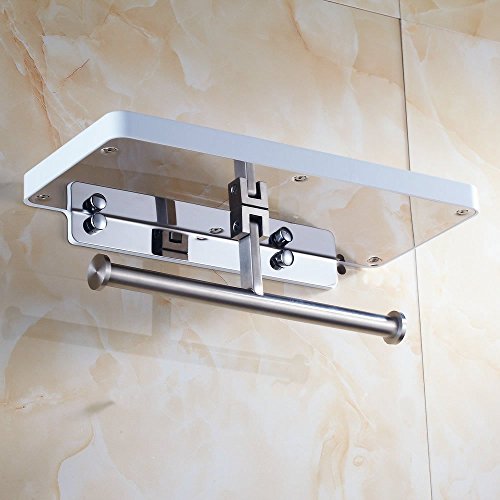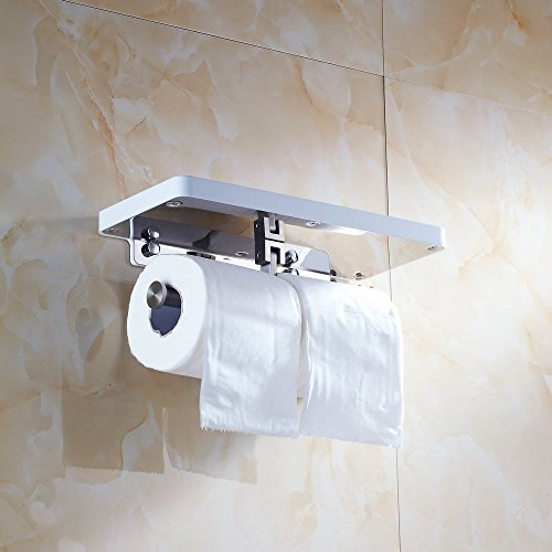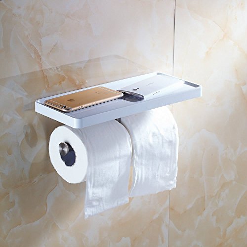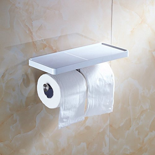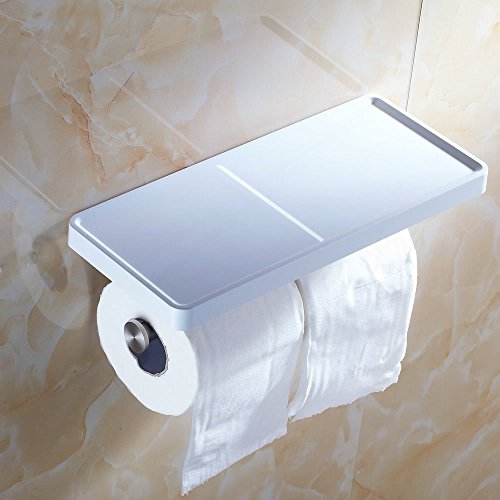 Beelee BA8801 Toilet Paper Holder with Shelf - White Double Paper Holder, Bathroom Cell Mobile Phone Holder Shelf, Wall Mounted design best for Bathroom