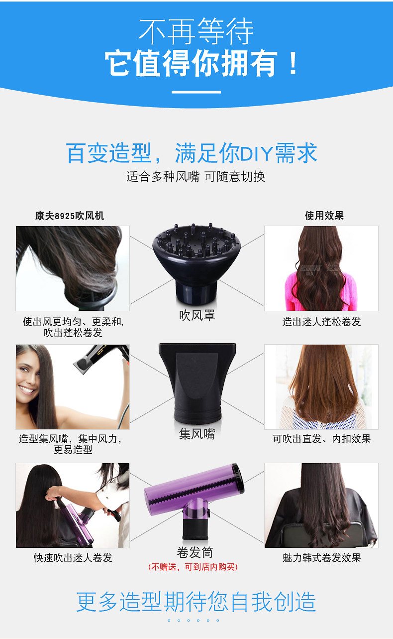康夫8925专业发廊级电吹风机大功率2200W 冷热风理发店家用筒正品