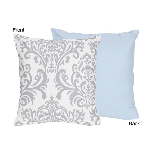 Sweet Jojo Designs Blue, Gray and White Damask Print Avery Decorative Accent Throw Pillow for Unisex Girl Boy Bedding
