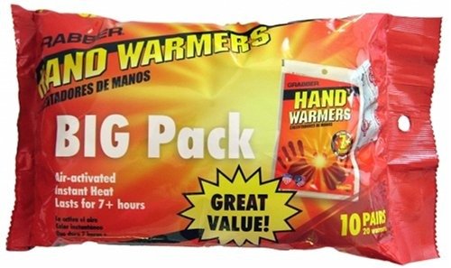 -. Binding : Misc. -. Brand : Grabber -. Feature : Average Temp. 135° F (57° C) / Instant Heat that comes naturally / Environmentally friendly / Contains 10 pairs - 20 warmers / Made in the USA -. ProductGroup : Home Improvement -. ProductTypeName : TOOLS -. Title : Grabber® Hand Warmers - 7+ Hours