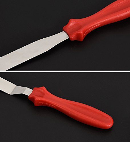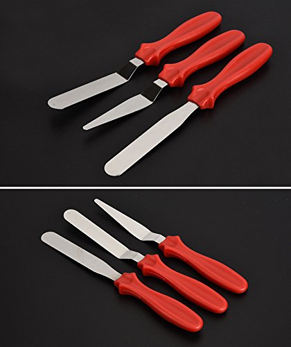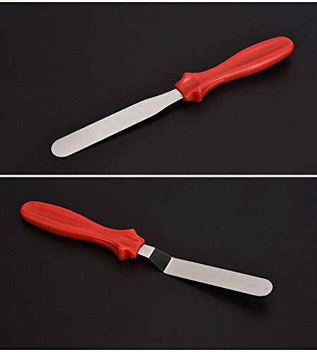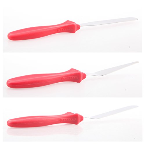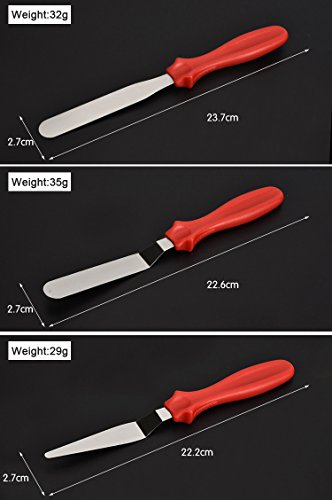 Cake decorating spatula set, great to use as a cake smoother or a icing spatula. Produced from stainless steel, with no sharp edges and the plastic, red handle is curved in for a secure grip. Easy to keep it clean. Specification Color:Silver Material:Stainless steel Handle Material:PP Length:22.2/22.6/23.7cm Size:2.7(W)*0.8(H)cm Weight:96g Package included 3 x Stainless Steel Cake Spatula