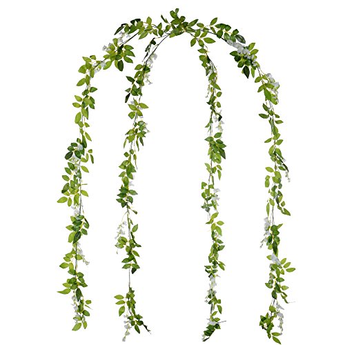 This silk wisteria is 6.6ft/2m in length,10 shorter strings each 0.7',pack of 4,suitable for outdoor wedding ceremony decor,wedding hanging flowers decoration,spaces enough for decorating items you want to adorn life.