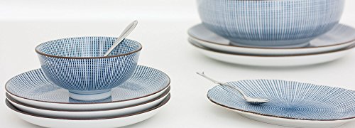 Product Description This wonderful series features a beautiful and intricate take on the traditional Tokusa design. Blue lines radiate from the center of the piece that grow to reach the rims. The details on this pattern are impeccable and perfect for any table. Microwave and Dishwasher Safe. Made in Japan. 0