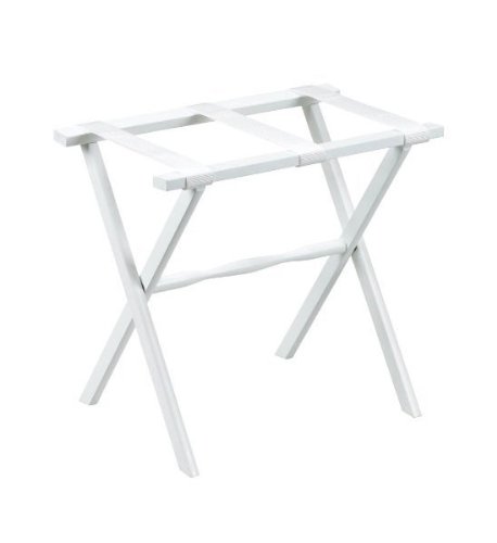 Studio : Gatehouse Furniture Publisher : Gatehouse Furniture Binding : Kitchen Product Description Keep your luggage at a convenient height with the Luggage Stand with Nylon Straps. The white finish on the Luggage Stand with Nylon Straps gives your bedroom or laundry room a crisp and clean look. The center spindle design hides the hardware on this Luggage Stand with Nylon Straps and allows this luggage stand to be stored away when not in use. Make it easier to pack and unpack your bags for long trips or frequent travel with this Luggage Stand with Nylon Straps. Luggage Stand with Nylon Straps White Features Center spindle design hides all visible hardware. Constructed in the USA from domestic hardwoods. Curved legs and white finish give this luggage stand a clean look. Three nylon straps hold your luggage at a convenient height. Folds up to store easily when not in use. 0