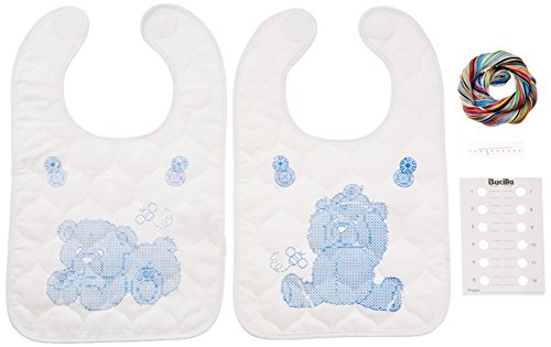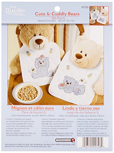 Bucilla Stamped Cross Stitch Bib Pair Kit, 9 by 14-Inch, 45726 Cute & Cuddly Bear (Set of 2)