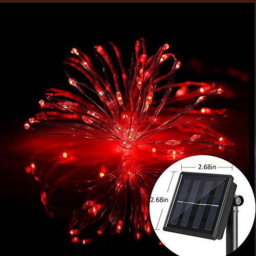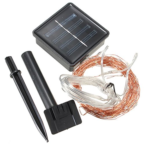 JIGUOOR 10M 100 LED Solar Powered Copper Wire Ambiance String Fairy Light +2m Down-lead String Light for Gardens, Homes, Wedding, Christmas Party ,Festival decoration