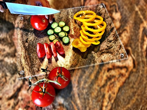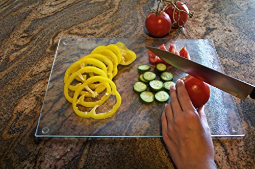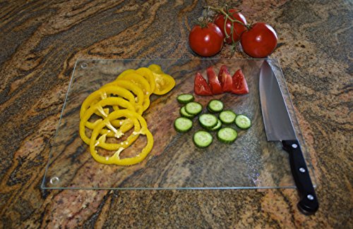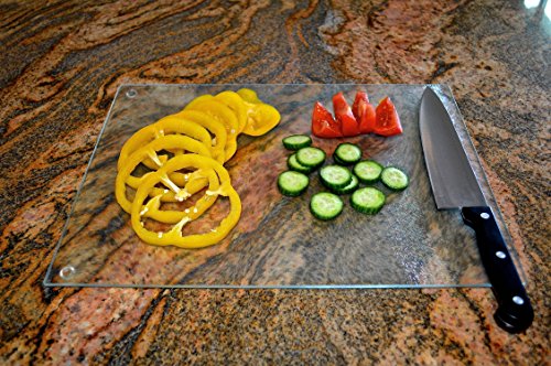 Glass Cutting Boards Scratch Resistant Clear Tempered Glass Shatter-Resistant, Durable, Stain Resistant 15x11 Plus 8 x12 and Chopping Knife. Bundle Pack. Two Cutting Board and Knife.