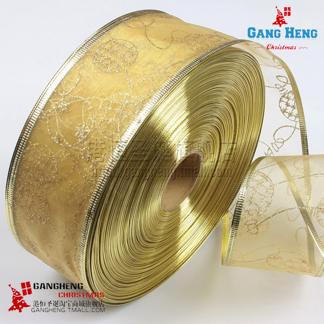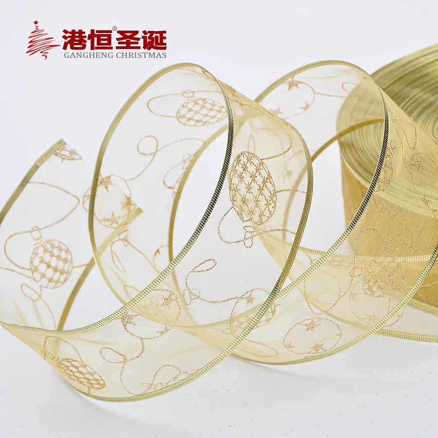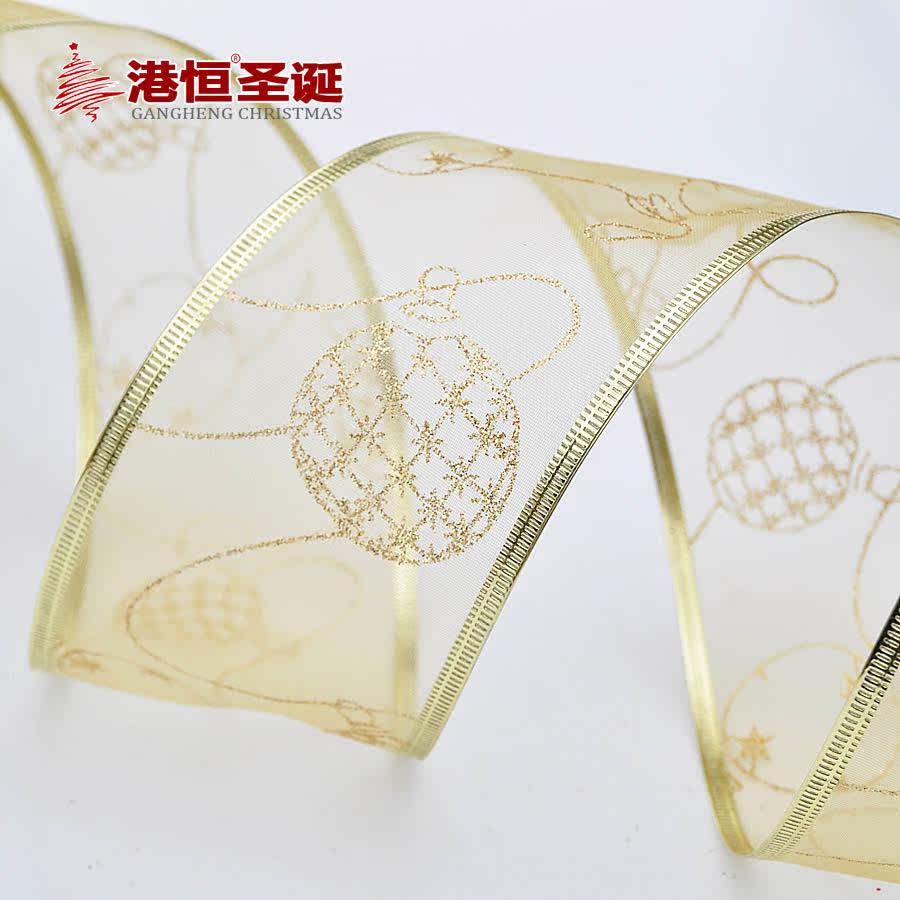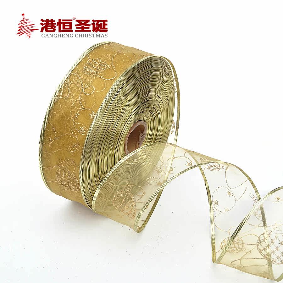 港恒 圣诞树装饰品 6.3*200cm金色烫金装饰彩织带/圣诞丝带 5g
