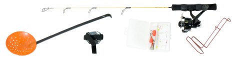 Product DescriptionEagle Claw Rigged to Rip carded ice Combon 28" rod Includes Ice Skimmer, Ice Cleats, Bucket Mount Rod holder, Ice fishing line, Tackle box w/jigs and depthfinder.0