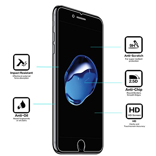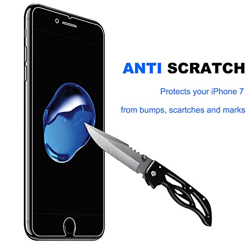 -. Feature : 0.26mm tempered glass screen protector designed for iPhone 7 4.7" ONLY, perfect cut and fit for your iphone's screen, 2.5D round edge provides more comfortable handle feeling than the right angle edge, and will never hurt your fingers / One-push super easily installation: Precise laser cut tempered glass made with polished, rounded edges, automatically attach to the screen smoothly, hassle-free and bubble-free. No residue when removed, can repeatable installation / Featuring maximum protection: 99.99% HD Clarity and Touchscreen Accuracy, Oleophobic screen coating magically resists oils and reduces annoying fingerP.R.Ints, against dirt and dust. Explosion-proof 9H Hardness Scratch-resistant screen protector can effectively protect your iPhone 7 from unwanted scuffs and scratches by knife, keys and some other hard substances / Lifetime no-hassle warranty provides easy lifetime protection for your tempered glass screen protector / Online video tutorials and detailed Instructions on how to correctly install your screen protector