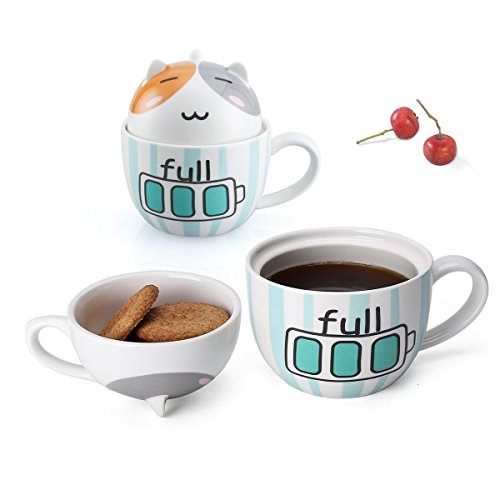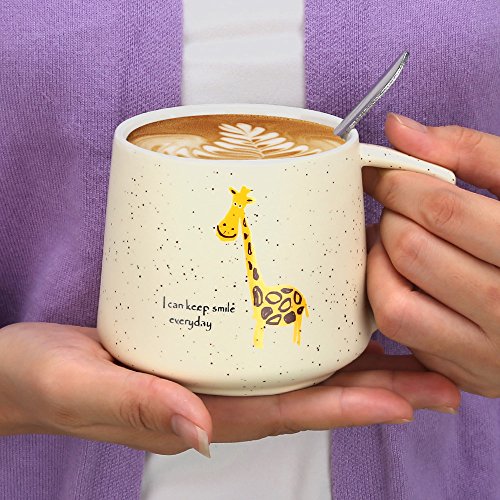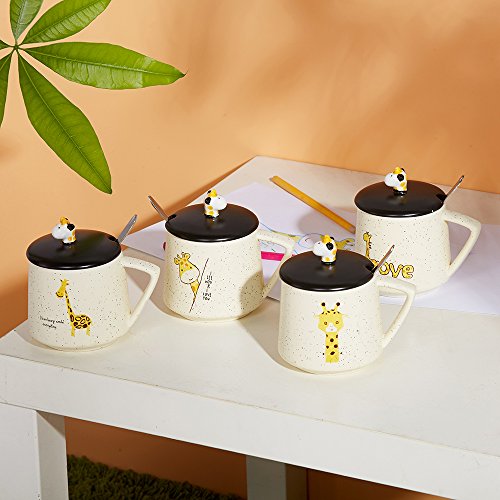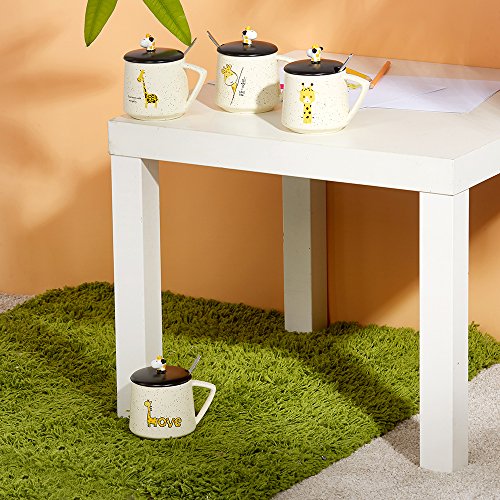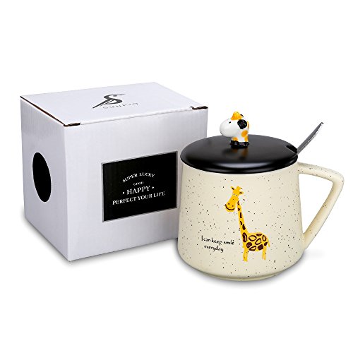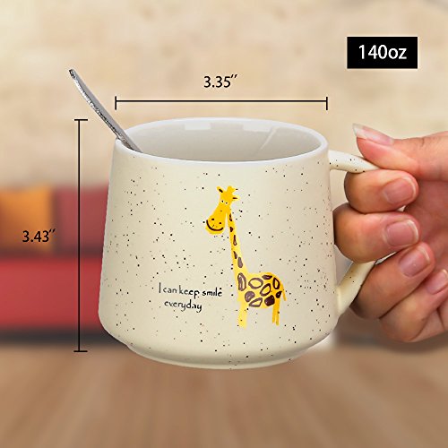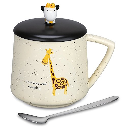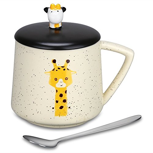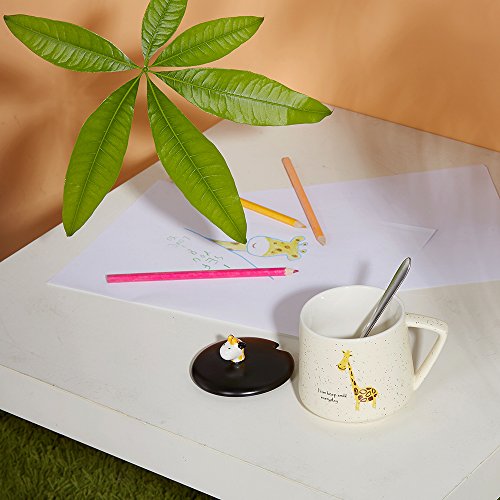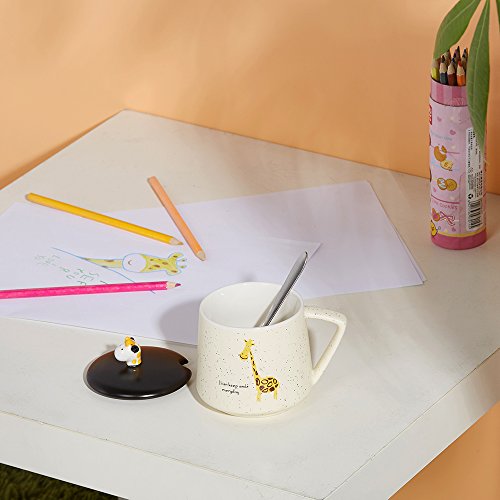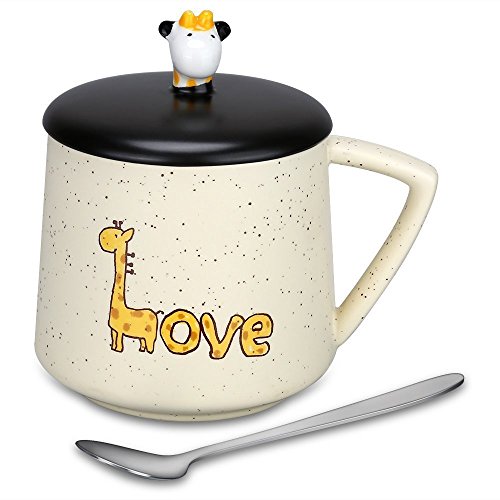 HIGH QUALITY AND LARGE CAPACITY --- Made of high quality ceramic; The paints won't chip off. Safe for children, 100% without toxic and heavy metals, BPA free, FDA approved. Useful design for cup lid, which has a small opening for a mixing spoon, preventing the dust into, clean and safe; Large capacity of 14oz/400ml meet your daily water demand.