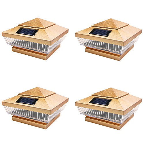 iGlow 4 Pack Copper Outdoor 4 x 4 Solar 5-LED Post Deck Cap Square Fence Light Landscape Lamp PVC Vinyl Wood Bronze