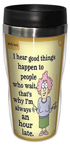 Tree-Free Greetings 16-Ounce Sip 'N Go Stainless Lined Travel Mug, Aunty Acid An Hour Late (SG78476)