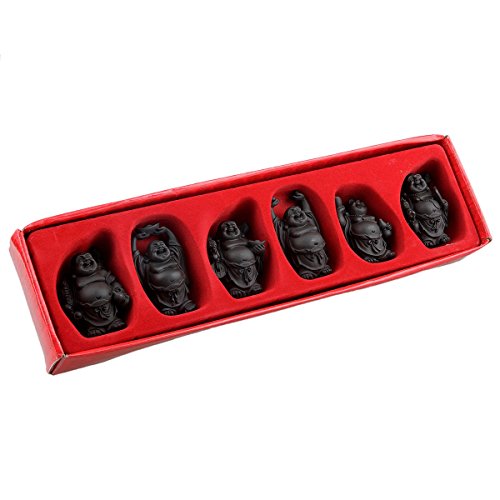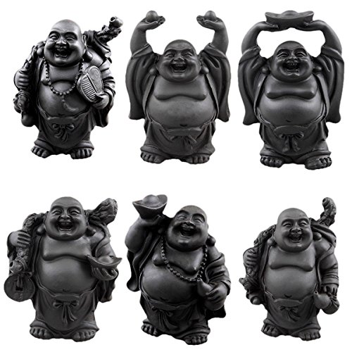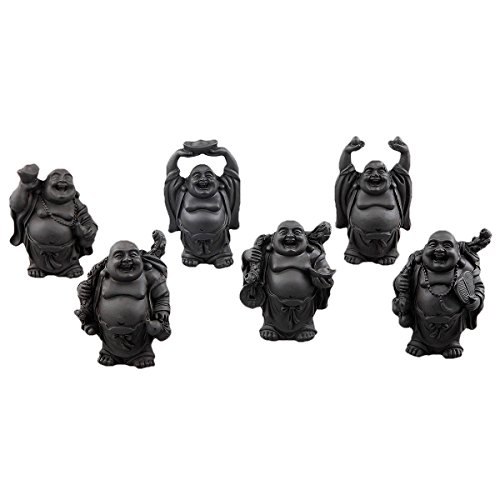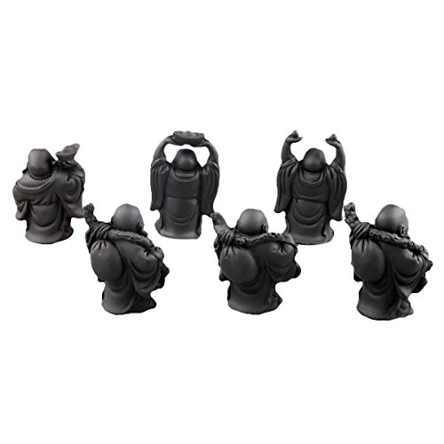 SUNYIK Black Hand Carved Happy Buddha Statue Sculpture Collection Kit Art Home Decor Fengshui Set