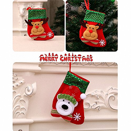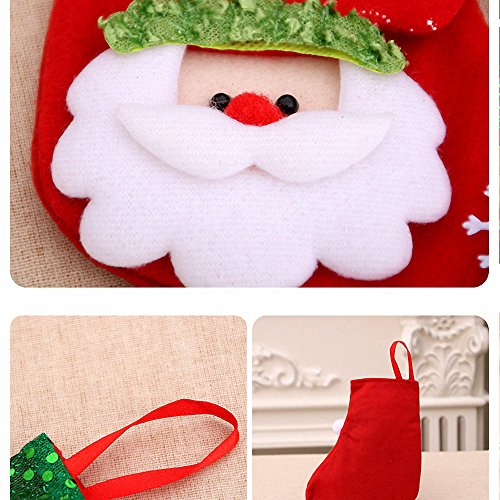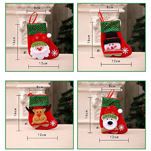 Small Christmas Stockings,A Set of 4 Pattern Sequins Decorative Xmas Candy Gift Bag Socks (Red)