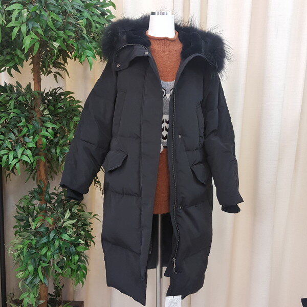 2017년 겨울신상 다운패딩입니다 후드라쿤퍼가 멋스러운 롱패딩입니다 어깨선이 사선절개로 되어 있어 편안하고 어깨가 좁아 보이는 장점이 있는 제품입니다