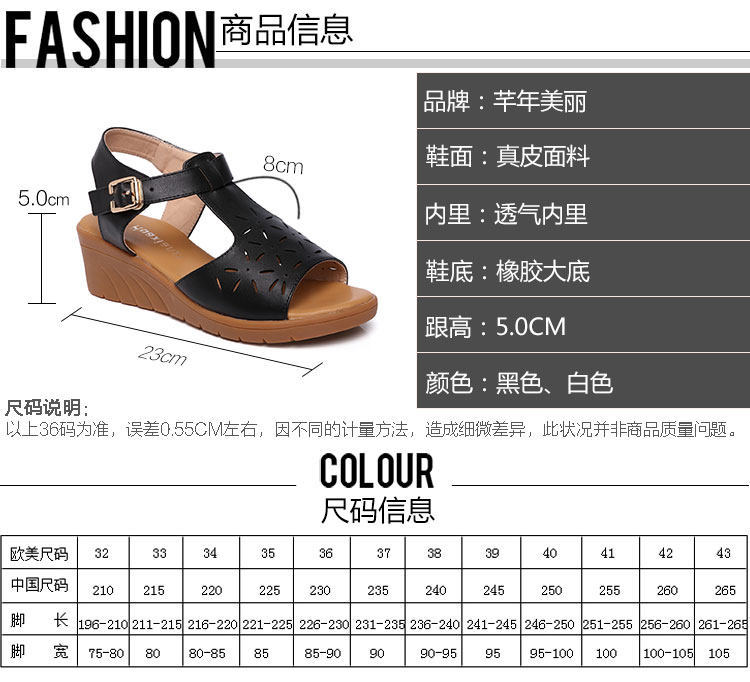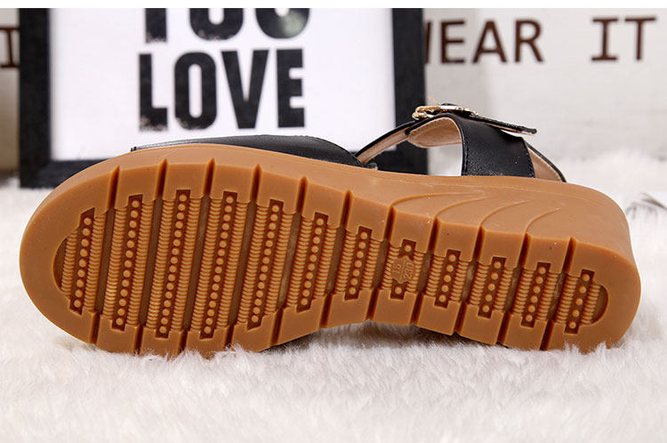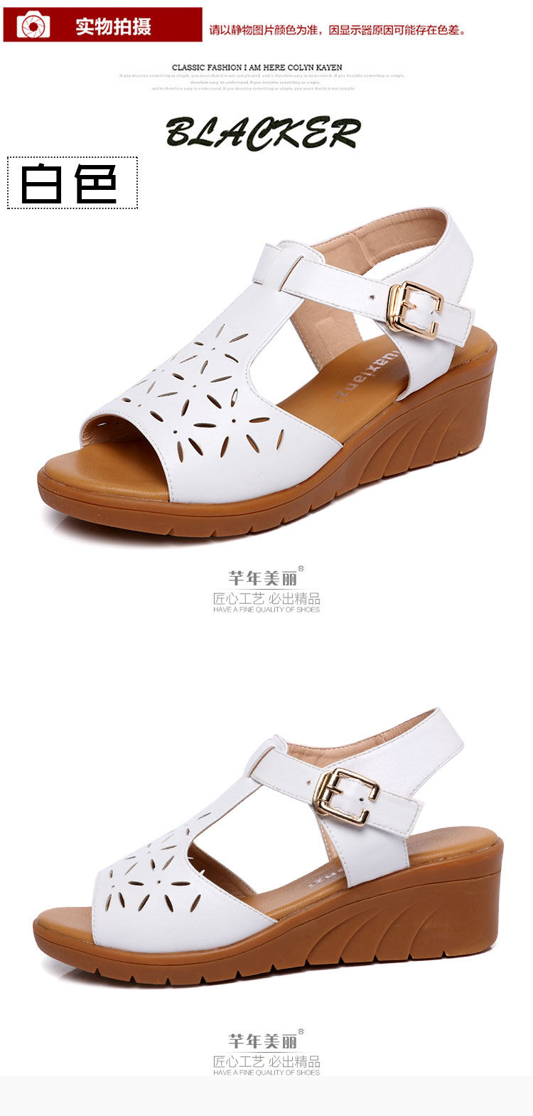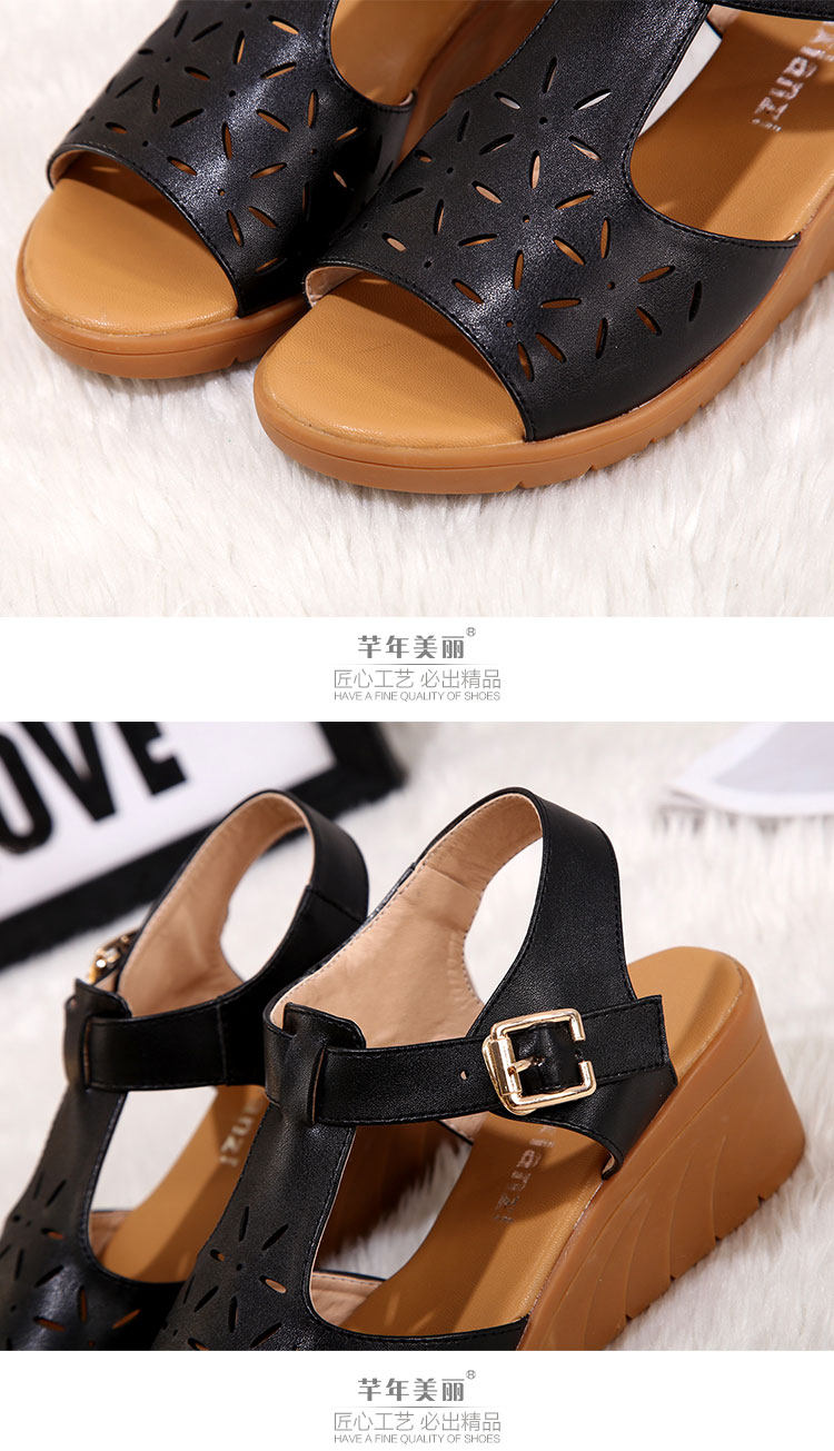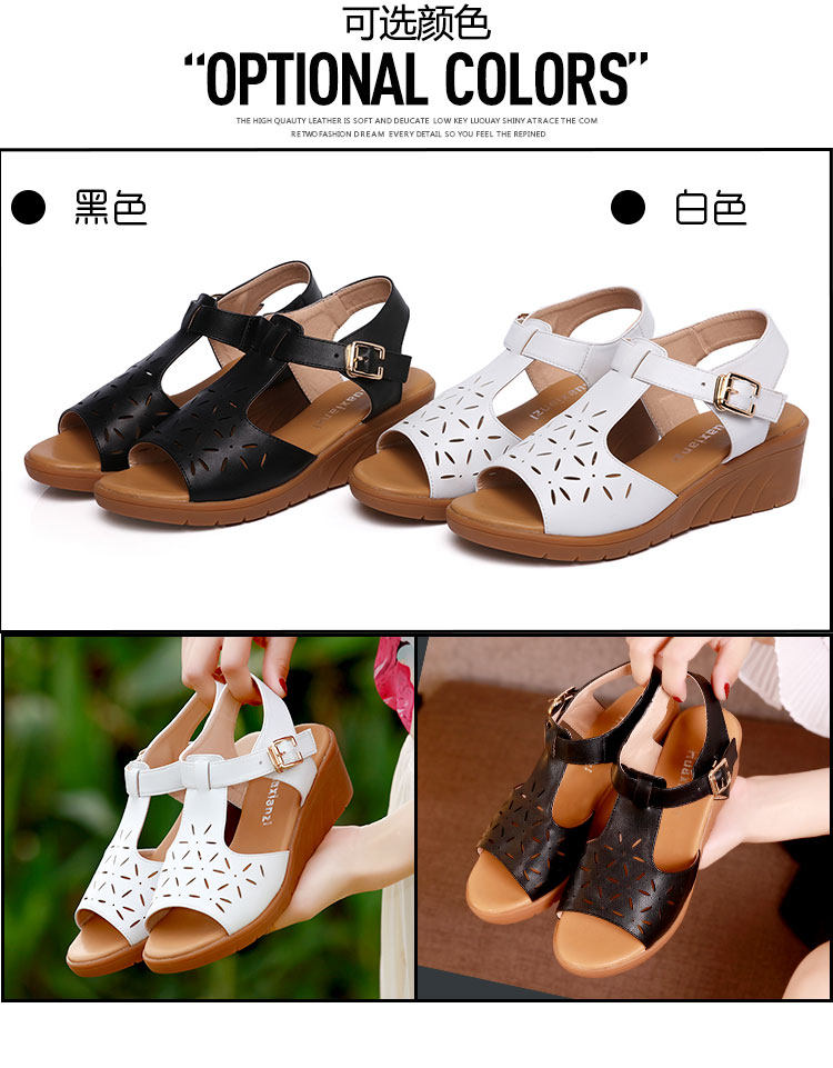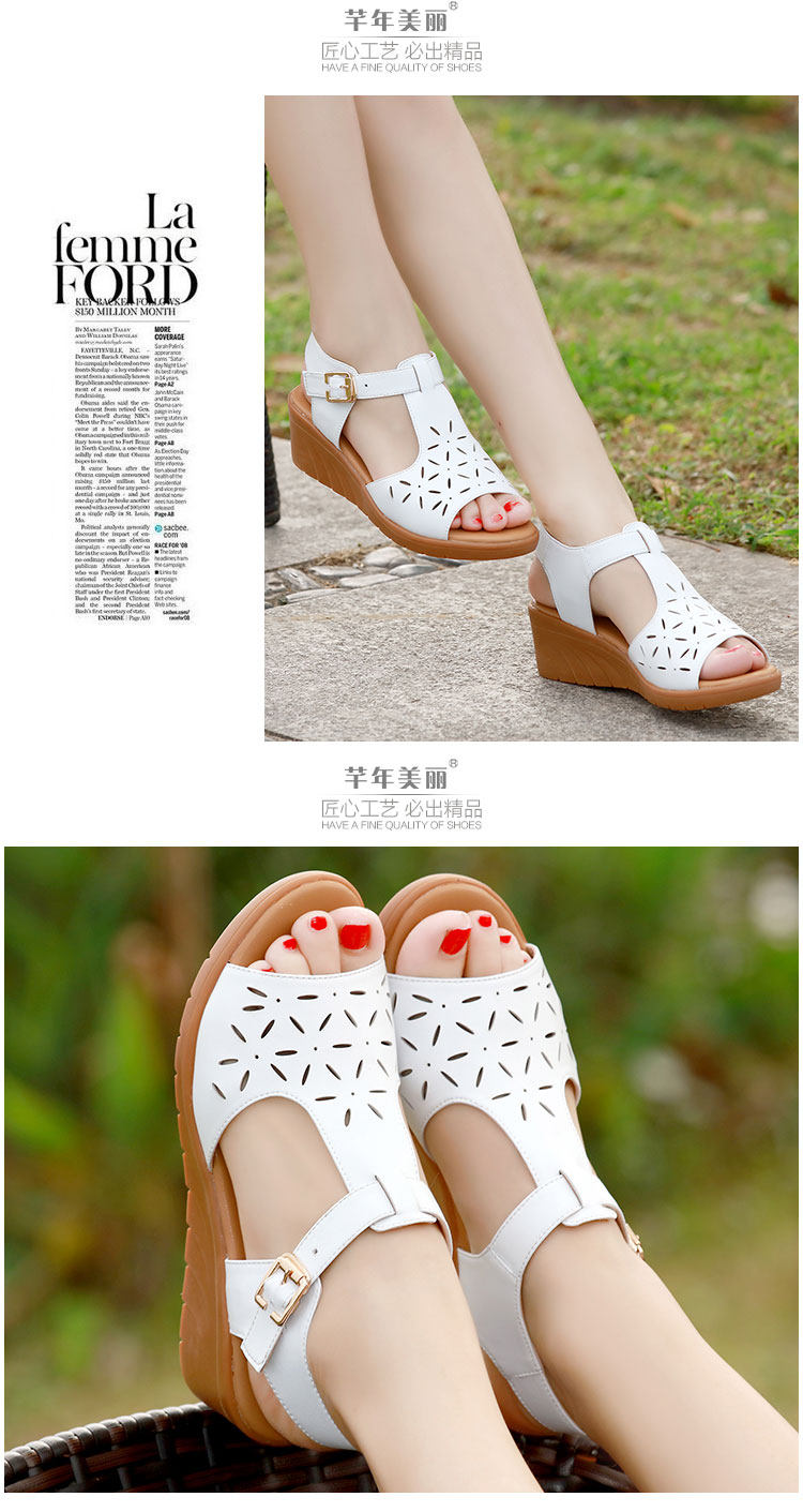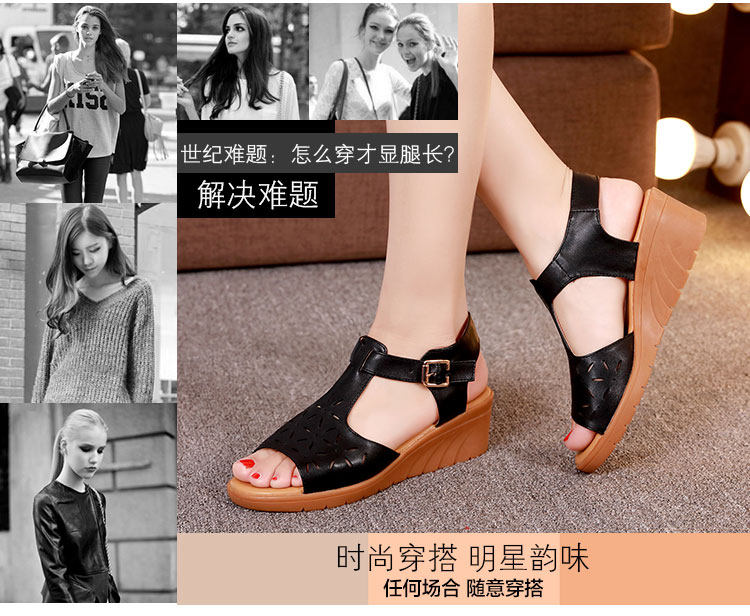坡跟凉鞋女夏季真皮中跟牛筋底百搭平底软底防滑凉鞋女鞋