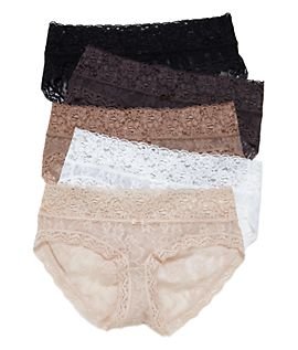 - Feature : All over floral stretch lace / Smooth, no panty lines fit / Flat elastic waist and leg trim / Low rise, falls below the natural waistline