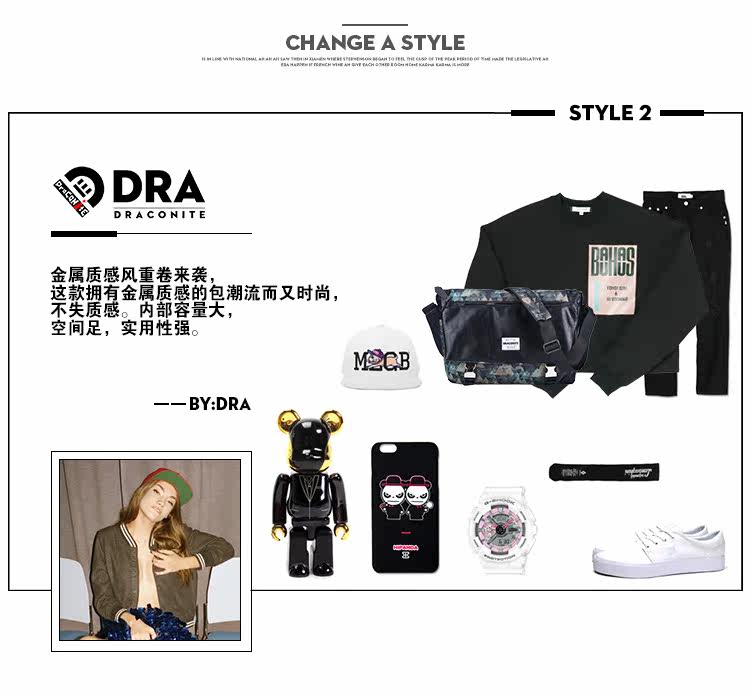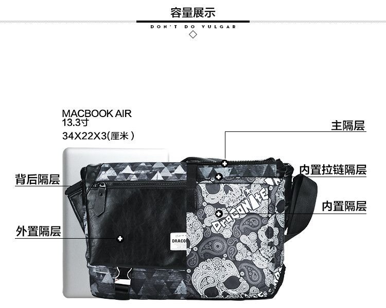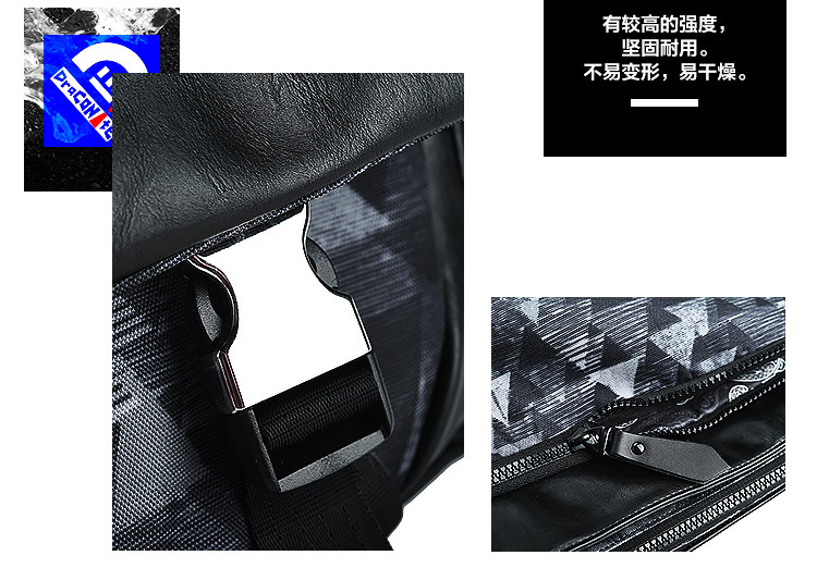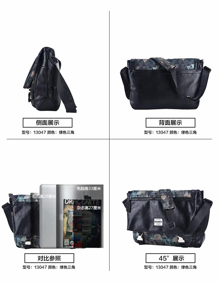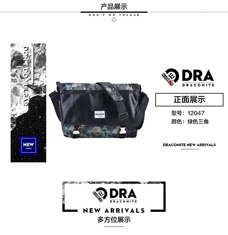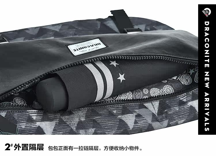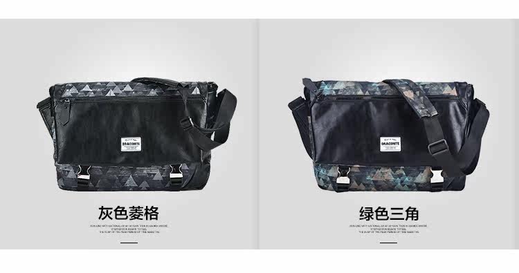 潮牌翻盖锁扣单肩包男几何三角印花帆布斜挎包韩12032A