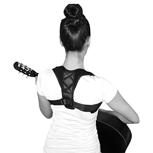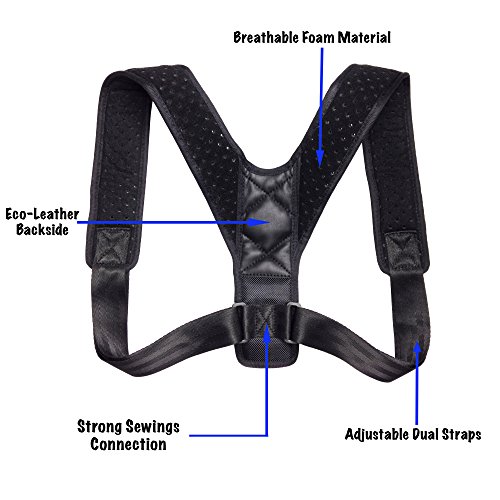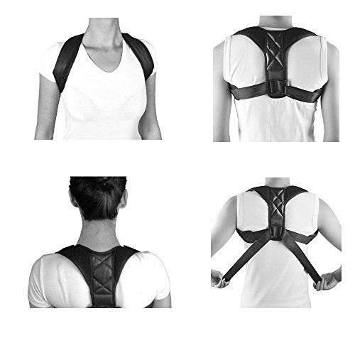 ATTITUDE IS POSTURE: Feel more attractive and confident as you stand tall and straight. Posture brace helps straighten your shoulders and removes neck discomfort from sitting with rounded shoulders. No more slouching on the laptop. Clavicle brace pulls shoulders back and regular use helps align your back and shoulders naturally. The particularity of the lower V strap in eco-leather at the back prevents to lean forward the neck and creates stability to the back side for a straight position