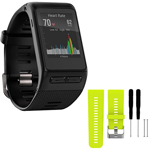 -. Title : Garmin vivoactive HR GPS Smartwatch - X-Large Fit - Black (010-01605-04) with General Brand Silicone Band Strap + Tools for Garmin Vivoactive HR Sport Watch (Lime)
