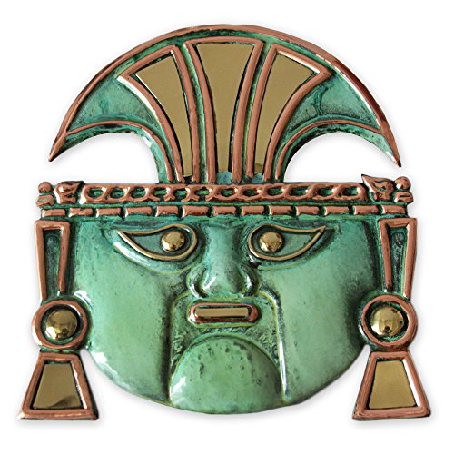 NOVICA Decorative Archaeological Copper and Bronze Mask, Metallic 'Great Ai Apaec II'