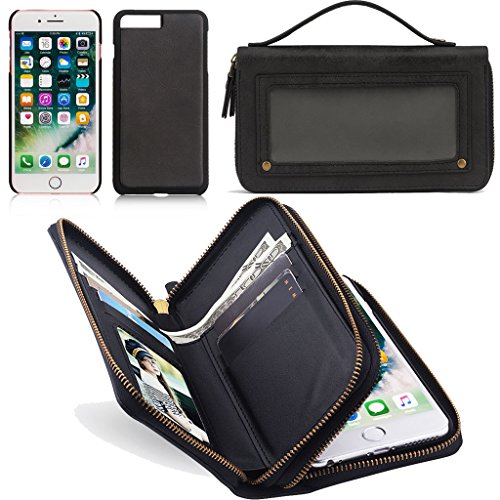 -. Title : iPhone 7 Plus Case, Premium Leather Credit Card Holder Feature Cover Wallet Type Flip Folio Case - Detachable Magnetic Back Cover with Lanyard Wrist Hand Strap for iPhone7 Plus 5.5 inch - Black