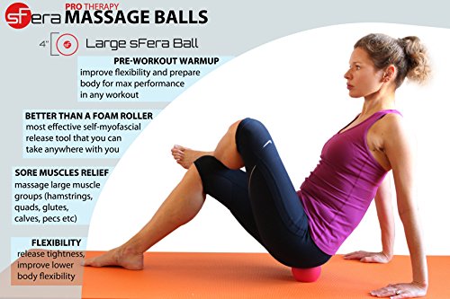 FOAM ROLLER ALTERNATIVE: made out of the same material as your favorite foam roller, the large ball will help you roll away tension in big muscle groups and to discover precise location of smaller muscle knots. Use pre-workout to prevent injuries and increase blood flow.
