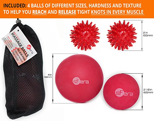 THERAPY MASSAGE BALL SET (INCLUDES 1 EXTRA LARGE AND 1 SMALL FIRM BALL, 2 SPIKY BALLS AND AN EBOOK WITH VIDEO INSTRUCTIONS) BEST MASSAGE BALLS FOR DEEP TISSUE, TRIGGER POINT AND MYOFASCIAL RELEASE