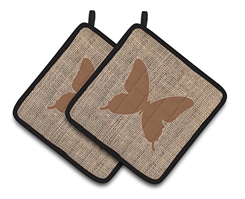 Caroline's Treasures Butterfly Faux Burlap & Brown Pair of Pot Holders BB1046-BL-BN-PTHD, 7.5HX7.5W, Multicolor