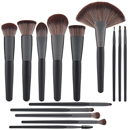 JPNK Synthetic Makeup Brush Set Cosmetics Foundation Blending Blush Eyeliner Face Powder Brush Makeup Brush Kit (Black)