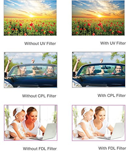 FILTER UV: Removes or absorbs ultra violet rays, giving sharper contrast to your film or video. Protects your lens from scratches and fingerprints.