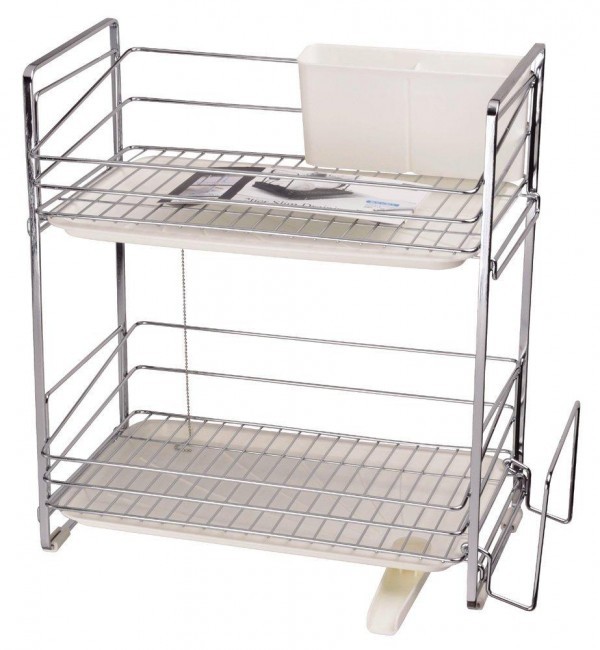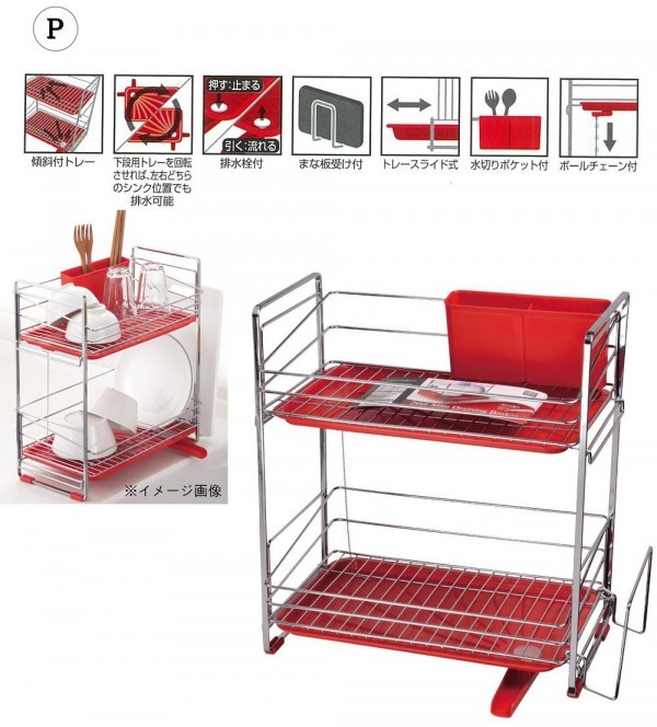 傾斜付トレーですので水捨ての手間が省けます。 製造国:樹脂部:日本、金属部:中国 素材・材質:本体・まな板受け:鉄(クロムめっき+クリアエポキシ樹脂塗装)トレー・水切りポケット:ポリプロピレン(100度)ノズルキャップ:シリコーンゴムチェーン:ステンレス鋼すべり止め:エラストマー 商品サイズ:幅365×奥行220×高さ405mm 仕様:完成品 ※サプライヤー直送品  ご注文後3~4営業日後の出荷となります【商品名】シンプルストレージ スリム水切りラック2段 ホワイト・HB-308