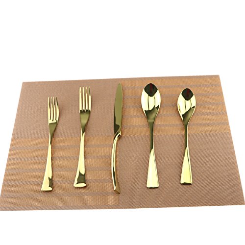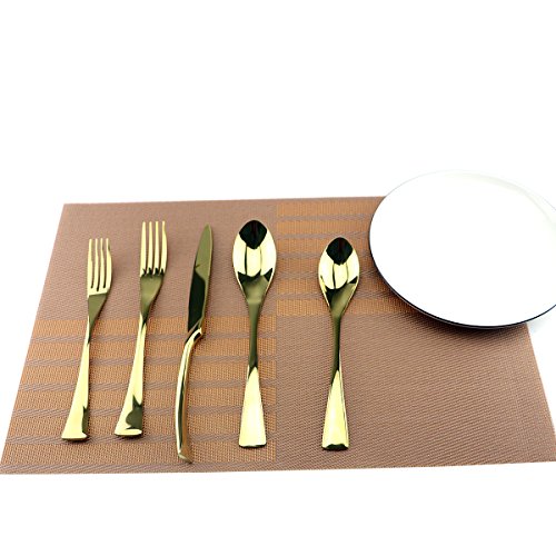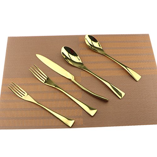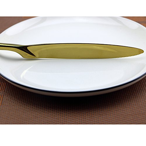 Uniturcky Gold 18/10 Stainless Steel Flatware Set – Stylish Set of Eating Utensils for 1 Person - Dinner Knife, Fork, Soup Spoon, Tea Spoon - Ideal Weight & Size, for Everyday Use or Holidays