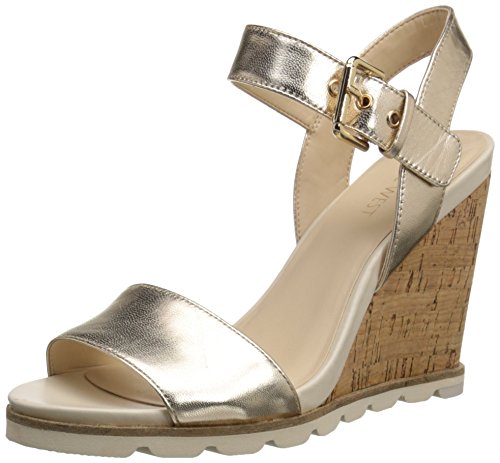 Nine West Womens Gronigen Metallic Wedge Sandal