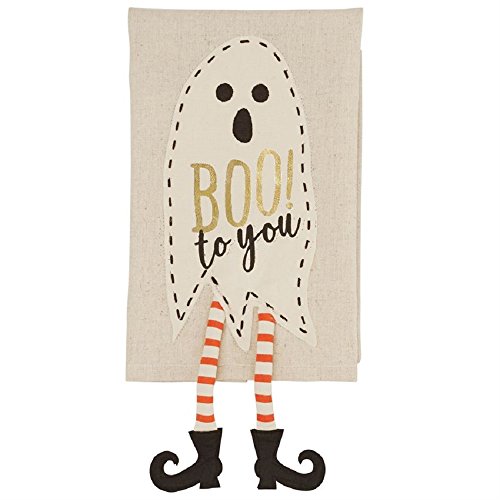 - Features a canvas towel with a canvas ghost applique that says: "BOO! to you" in metallic lettering & has dangling legs