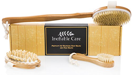 Dry Brushing Body Brush for Dry Skin Brushing & Exfoliating with 100% Natural Boar Bristles & Long Handle kit - Back Brush Scrubber, Bath & Shower Brush,...
