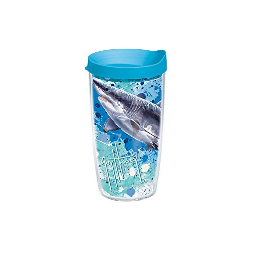 Tervis Shark Splatter Wrap Bottle with Turquoise Lid, 16-Ounce, Guy Harvey