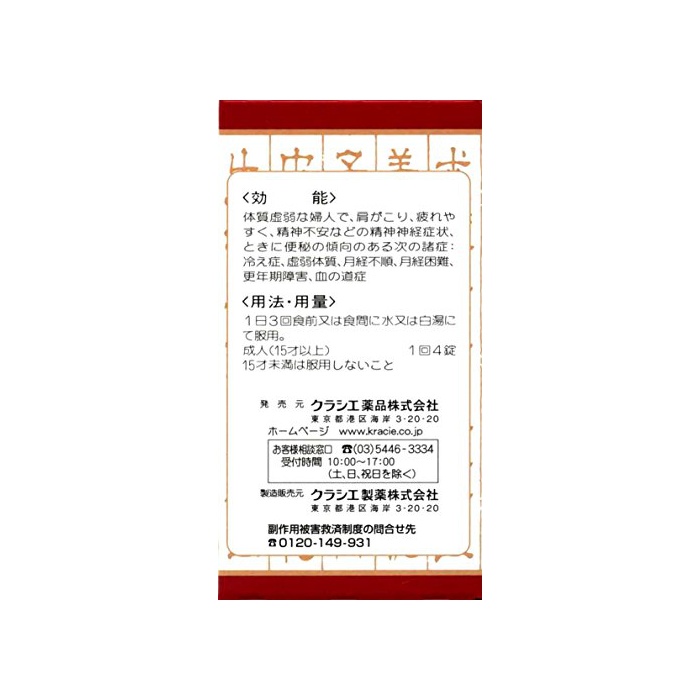 원본상품명: 【第2類品】加味逍遙散料エキス錠クラシエ 180錠