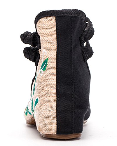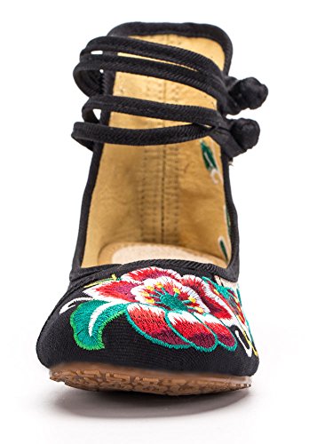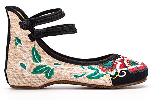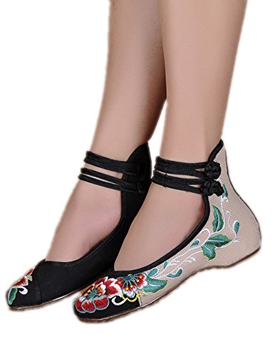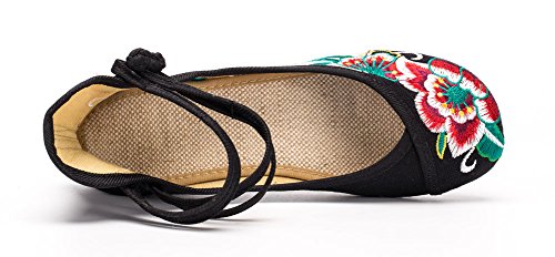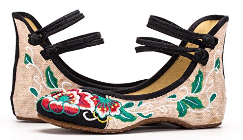 AvaCostume Womens Folk Style Shoes Rubber Sole Peony Embroidered Bride Flats
