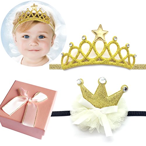Elesa Miracle Baby Hair Accessories Baby Girl's Gift Box with Shiny Crown Tiara Headband