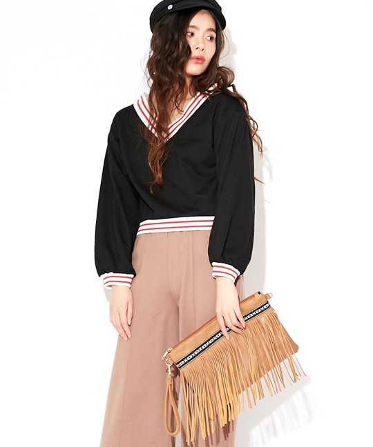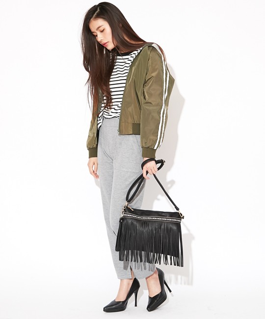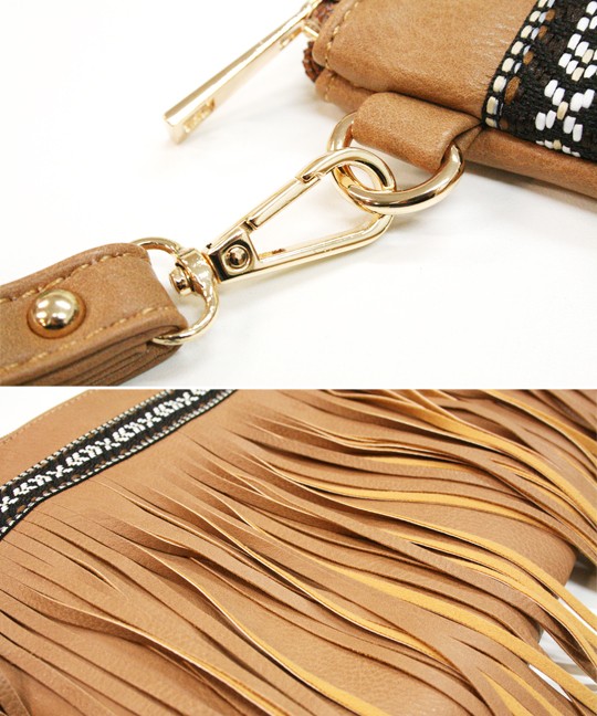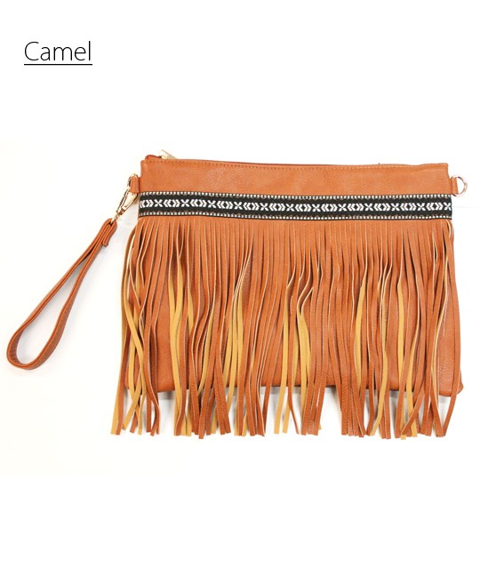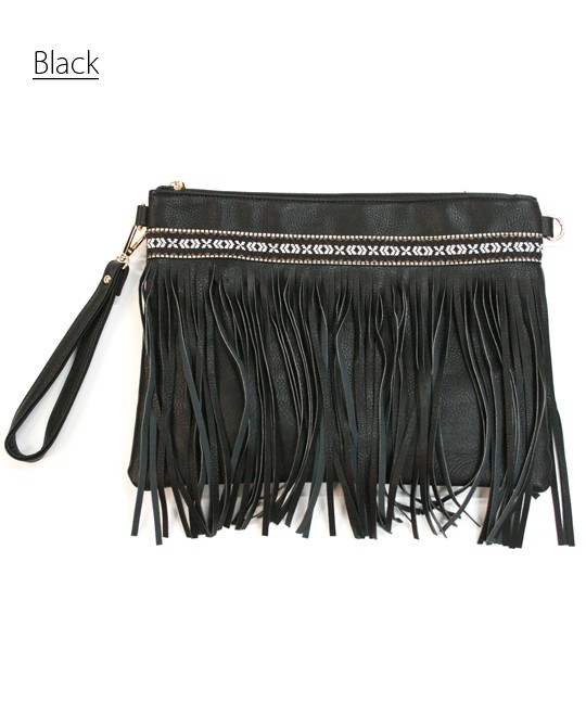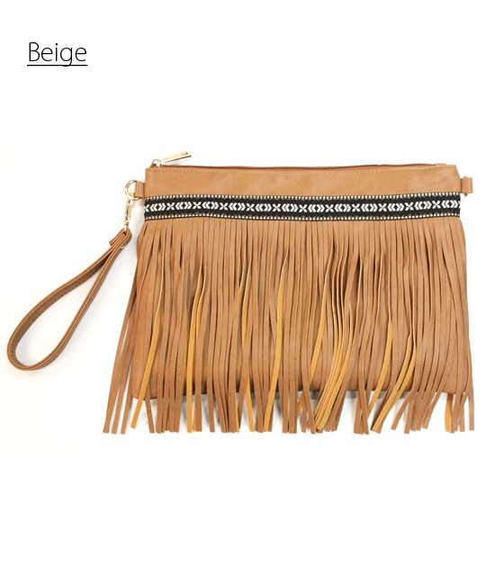 春夏にぴったりなカジュアルクラッチバッグです。フリンジが存在感を放ち、シンプルなコーデにも映えてくれるワンランク上のクラッチバッグカバン上部にはチロリアンテープが縫い付けてあり、ボヘミアン調なのがポイントです付属のストラップでショルダーバッグとしてもお使いいただける優れもの。使いやすい3色をご用意しました。どんなコーデにも合わせられるマストバイなトレンド小物です!モデル 身長165cmMサイズ