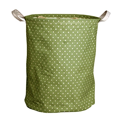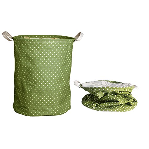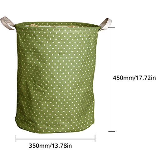 Andux Cotton Fabric Collapsible Laundry Basket Dirty Clothes Hamper-ZYL-01 (Green Dot)