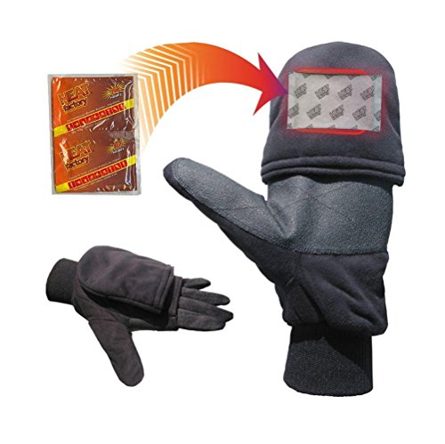 ReleaseDate : 2014-06-10 Studio : HEAU3 Publisher : HEAU3 Binding : Sports Product Description Great for skiing, cycling, hunting, snowshoeing, and more, Heat Factory’s gloves with Pop Top Mittens makes frozen fingers a thing of the past. The fold-back mitten cap has a specially-designed pocket that holds Heat Factory air activated Hand Warmers over the fingers, providing additional warmth on the coldest days. Each pair of gloves comes with one pair of Heat Factory Hand Warmers that provides up to 10 hours of continuous long-lasting heat (additional warmers are sold separately). Quiet magnets sewn into the top of the glove hold the mitten cap back and out of the way when dexterity is needed. When the mitten cap is pulled away, the inner liner of the glove remains in place to provide continued warmth and protection to your fingers. An elastic cuff at the bottom of the glove is designed to keep wind and snow out of the mitten and away from your hands. The rubberized palm grip allows you to hold items with confidence and ease. This combination of a time-tested design and Heat Factory warmer technology gives you protection and warmth in any condition. Heat Factory's air activated hand warmers, body warmers, toe warmers, and heated accessories have been providing warmth and pain relief to outdoor enthusiasts for the past 30 years. 0