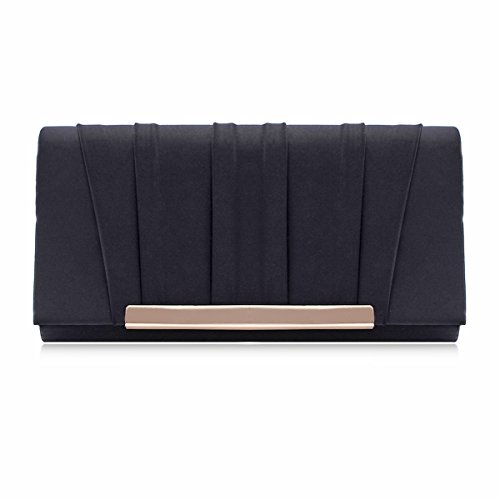 -. Title : Damara Womens Sleek Pleated Satin Medium Clutch Formal Evening Party Bag